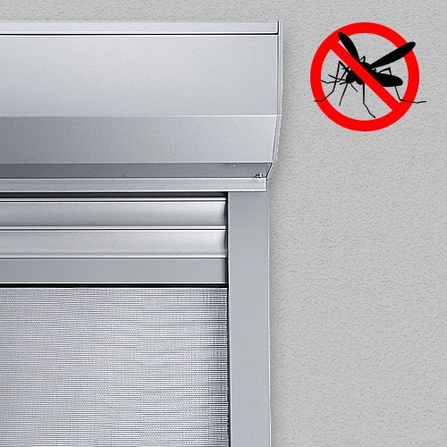 Auf Wunsch können wir die Rolllomatic® SK 40 und die Bogena®-Rollläden mit einem Insektenschutzrollo ausstatten. Das Rollo lässt sich nahtlos in den Rollladenkopf integrieren und besteht aus robustem Glasfasergewebe, das viel Licht durchlässt. So können Sie Ihr Fenster zur Belüftung offen lassen, ohne sich Sorgen machen zu müssen, dass Insekten hereinkommen.